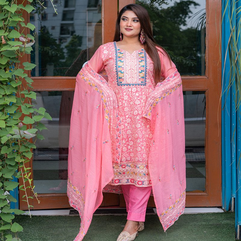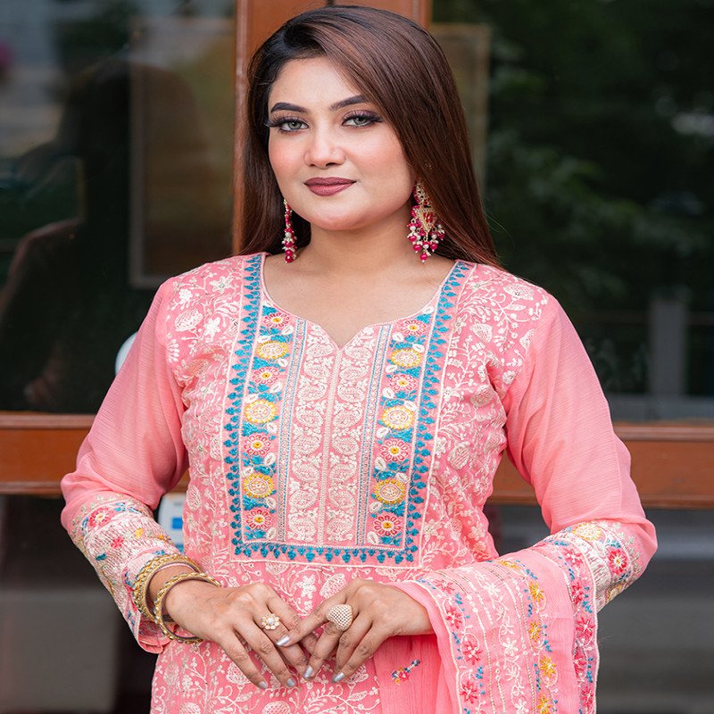 Sleeve: Georgette & Embroidery With Sequence Work