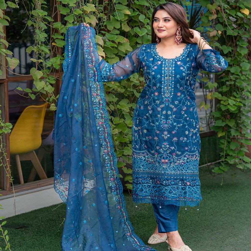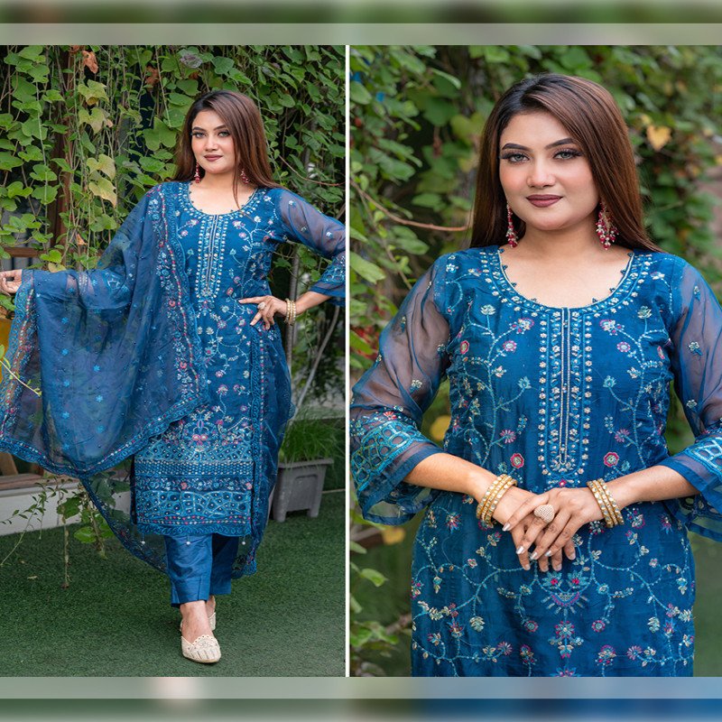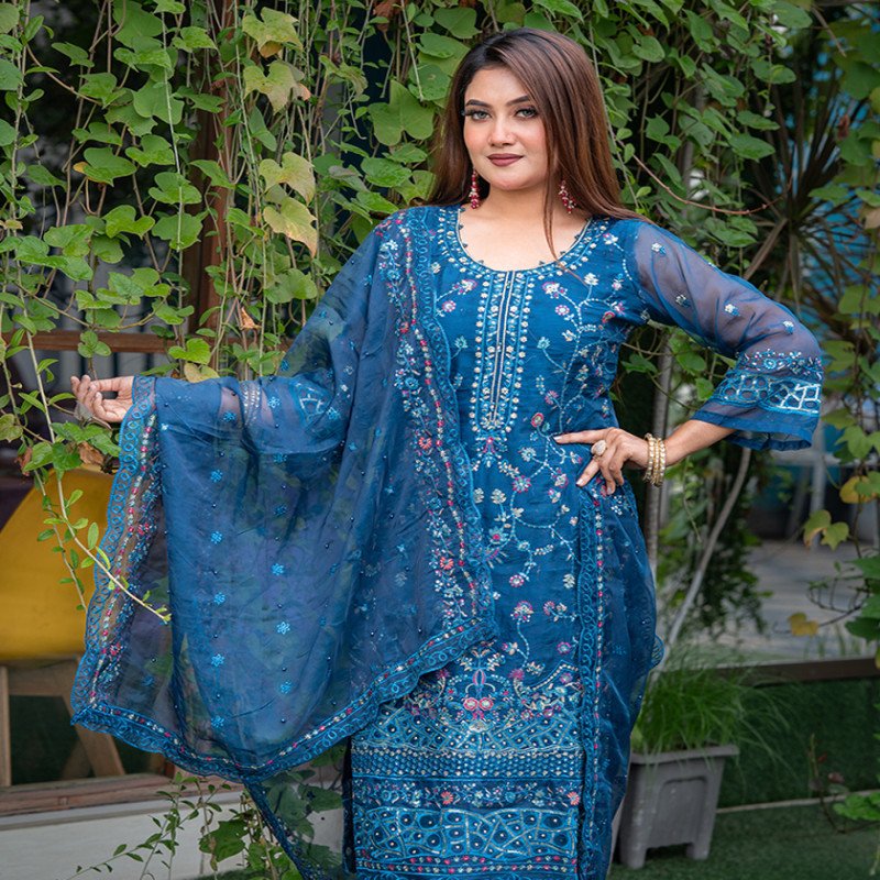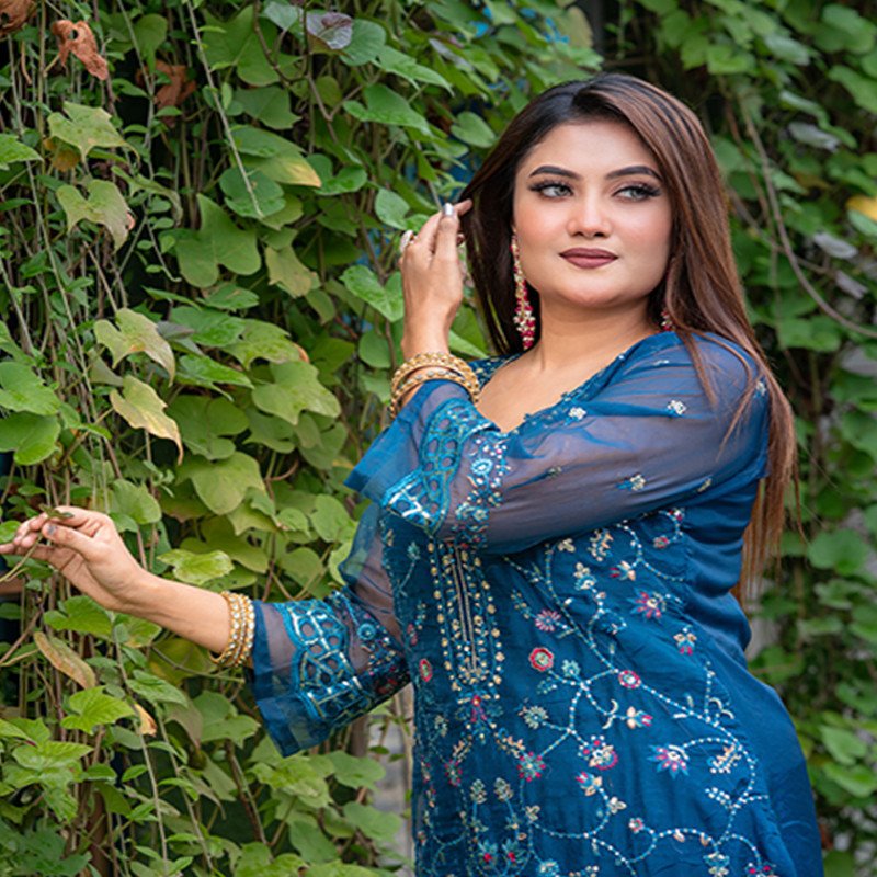 Sleeve: Georgette & Embroidery With Sequence Work