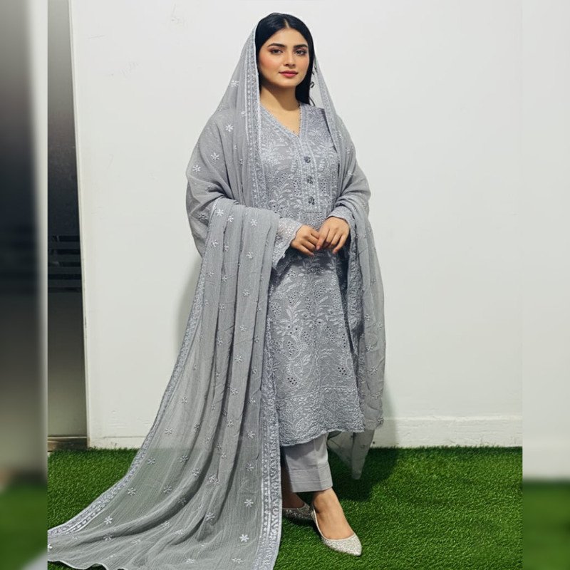Sleeve: Georgette & Embroidery With Sequence Work
