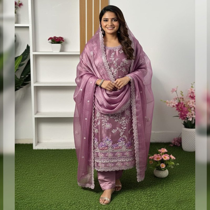 Sleeve: Georgette & Embroidery With Sequence Work