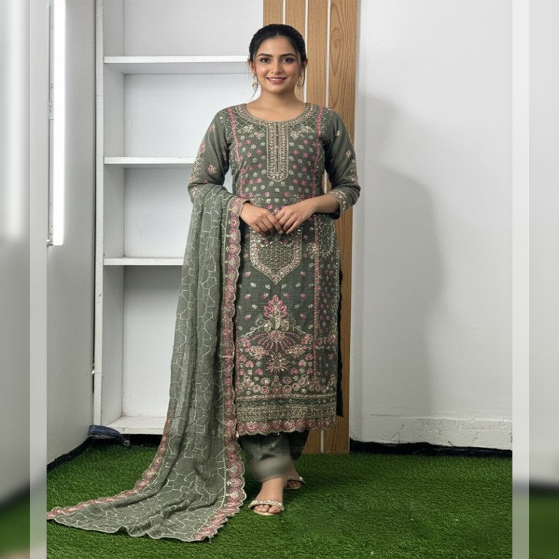 Sleeve: Georgette & Embroidery With Sequence Work